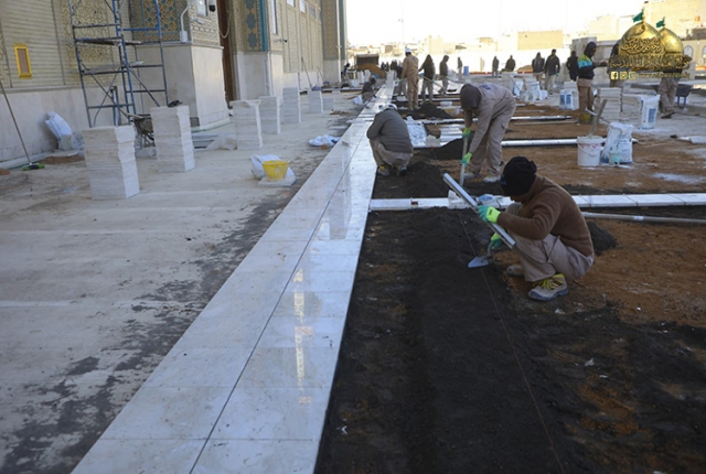 صحن الإمامين الحسنين "عليهما السلام" يرتدي حلته المرمرية