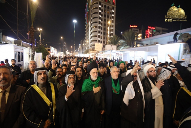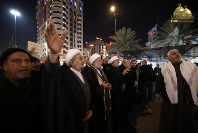وشارك تلك الجموع موكب خدّام الإمامين الجوادين "عليهما السلام" بعدها تجمهرت المواكب المعزّية في رحاب الصحن الكاظمي الشريف، وكان في استقبالهم أعضاء مجلس إدارة العتبة الكاظمية المقدسة الموقر، لتختتم مسيرتها بمجلس تأبيني مستذكرين خلاله مآثرها "عليها السلام" وأبعاد مسيرتها الإنسانية والإيمانية والرسالية والاجتماعية، ودورها الكبير في حياة الأمة وتضحياتها بالغالي والنفيس وجهادها المرير، ومواقفها الصلبة في الحفاظ على مفهوم المسيرة الحسينية، ثم ابتهل المعزّون إلى الله العليّ القدير بالدعاء بتعجيل فرج مولانا القائم من آل محمد "عجل الله فرجه الشريف"، وأن يرحم شهداءنا، وأن يعم الأمن والأمان على بلدنا العزيز وشعبنا الأبي الصابر.