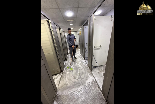 كما شهد البرنامج الخدمي أعمالاً عدّة منها: فرش الصحون الشريف والفضاءات العبادية، وتهيئة كميات كبيرة من الأقداح البلاستيكة ذات الاستخدام لمرة واحدة، وإدامة شبكات الصرف الصحي والمنشآت الخدمية ودورات المياه داخل الصحن الشريف وخارجه ومنها الحمامات المتنقلة وعلى مدار الساعة، وتجهيزها بأنواع المنظّفات والمعقمات والمطهرات، وتنظيف الشوارع المحيطة بالصحن الكاظمي الشريف، فضلاً عن الجهد الخدمي لدعم وإسناد الأقسام الأخرى، وتعزيز تلك الجهود بمعدات التنظيف الآلي المتطورة سعياً لتوفير أفضل الخدمات للزائرين الكرام.