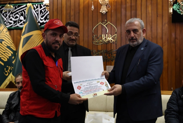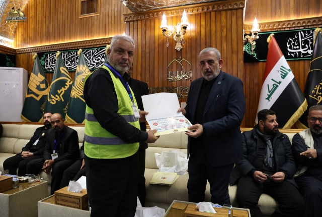 هكذا عهدناهم في كل عام، متبركين بشرف خدمة زائري الإمامين الكاظمين "عليهما السلام"، حيث كرّمت الأمانة العامة للعتبة الكاظمية المقدسة نخبة من ممثلي المؤسسات الخدمية التطوعية، الذين ساهموا في خدمة الزائرين الكرام بعد انتهاء المهام الموكلة إليهم، بالتعاون مع العاملين في الأقسام والشُعب الخدمية داخل العتبة المقدسة.