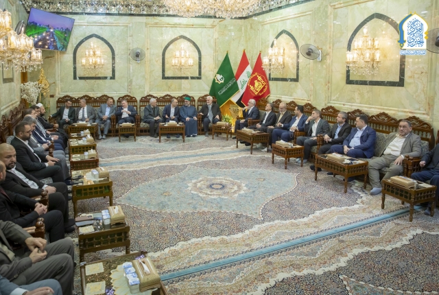 في أجواء مفعمة بالإيمان والولاء لأهل بيت النبوة "عليهم السلام"، تشرّف الأمين العام للعتبة الكاظمية المقدسة، خادم الإمامين الكاظمين الجوادين الدكتور حيدر حسن الشمّري بتسلم الراية الشريفة لكريم أهل البيت الإمام الحسن المجتبى "عليه السلام" التي تم صناعتها في ورش العتبة الحسينية المقدسة لترفع في سارية العتبة الكاظمية المقدسة إلى جانب رفعها في العتبات المقدسة الأخرى، في ليلة واحدة إحياءً لذكرى ولادته "عليه السلام" في الخامس عشر من شهر رمضان المبارك، بعد تشرّف الأمين العام والوفد المرافق لهُ بزيارة سيد الشهداء الإمام الحسين، وأخيه المولى أبي الفضل العباس "عليهما السلام"، وتلبية دعوة المأدبة الرمضانية التي أقامتها الأمانة العامة للعتبة العباسية المقدسة، بحضور الأمناء العامين للعتبات المقدسة في العراق (العلوية والحسينية والعسكرية).