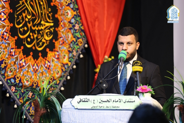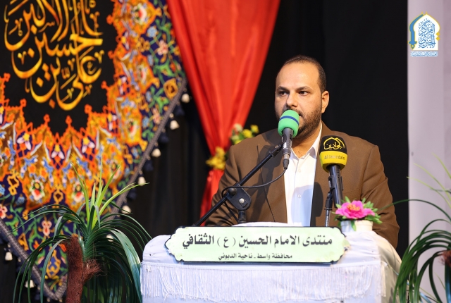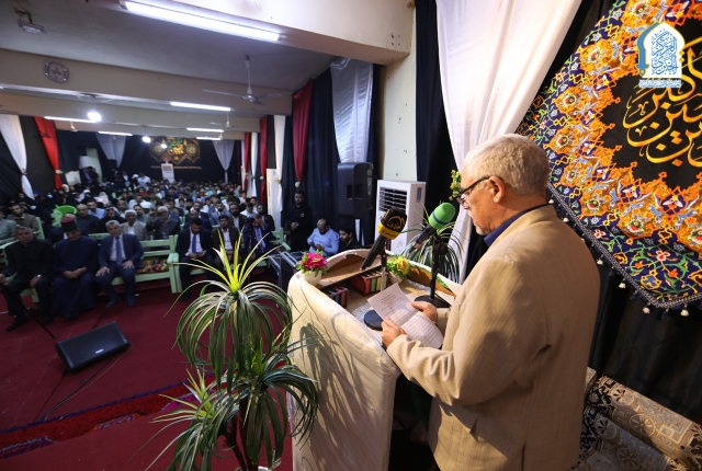 بعدها كلمة الأمانة العامة للعتبة الكاظمية المقدسة وألقاها نائب الأمين العام المهندس سعد محمد حسن قائلاً: (إن الإمام الحسن المجتبى "عليه السلام" جسَّد القيَمَ الإسلامية بأسمى معانيها، فكان مثالًا في الصبر والحكمة والعطاء، وهو الذي وصفهُ النبي "صلّى اللهُ عليه وآلهِ" مع أخيه الحسين بقوله: "الحسنُ والحسينُ سيِّدا شبابِ أهلِ الجَنَّةِ". ورغم كلِّ التحديات التي واجهها، كانَ عنوانًا للسلام والإصلاح، فقدَّمَ أعظمَ درسٍ في التضحية حينما اختار الصُّلح حفاظاً على الأُمة الإسلامية من الفِتَنِ والانقساماتِ.