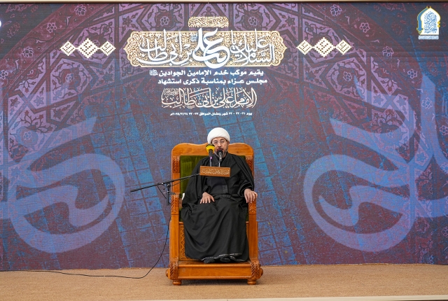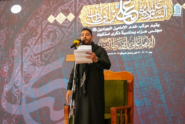 استذكاراً لشهادة إمام المتقين أمير المؤمنين علي بن أبي طالب "عليه السلام"، وبرعاية الأمين العام للعتبة الكاظمية المقدسة خادم الإمامين الكاظمين الجوادين الدكتور حيدر حسن الشمّري، أقام موكب خدم الإمامين الكاظمين الجوادين مجلساً عزائياً بهذه المناسبة الأليمة في رواق سيدنا عبد الله بن عبد المطلب "عليه السلام"، استضاف المجلس كل من: فضيلة الشيخ منير العامري وفضيلة الشيخ منير الكاظمي وفضيلة الشيخ عماد الكاظمي، لتقديم سلسلة من المباحث الدينية القيّمة واستعرضا فيها شذرات من السيرة المباركة للإمام علي "عليه السلام"، وعدالته التي لازمت شخصيته وأصبحت أنموذجاً واضحاً لكل القادة و طلاب العدالة على مرّ القرون، ومصداقاً مشرّفاً للإنسان المسلم المتكامل الذي يستطيع أن يكون قدوة في جميع المجالات، ودوره في حمل مشعل القيادة الربّانية للحفاظ على معالم رسالة الإسلام المحمدي الأصيل، ومواجهته لأخطر مرحلة من تاريخنا الإسلامي بمواقفه ومنطلقاته المبدئية، إذ حافظ "عليه السلام" على مسيرة الحركة الرسالية لتصل إلى الأجيال القادمة من خلال ما أنتجته مدرسته العظيمة من عناصر نبيلة شعتْ بها سماء الإسلام حين أحاطت بآل بيت النبوة "عليهم السلام" إحاطة الفراشات بمشكاة الضياء.