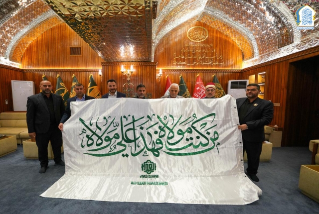 الأمانة العامة للعتبة الكاظمية تستلّم الراية المباركة احتفاءً بذكرى عيد الغدير الأغر