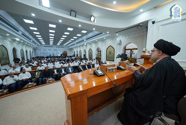 محاضرة دينية توجيهية إرشادية لسماحة السيد حسين الحكيم ويَلتقي كوكبة من الخَدَم