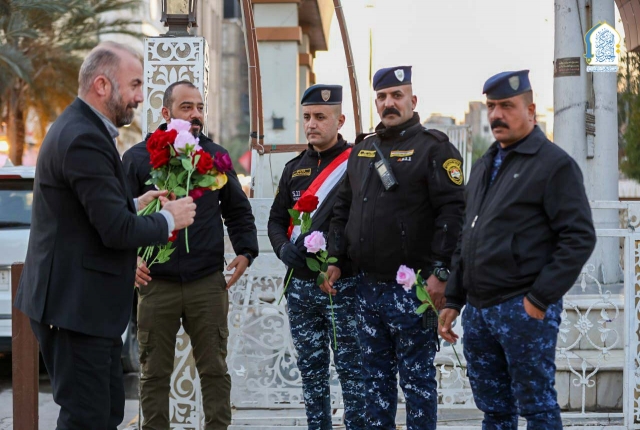 ابتهاجاً بذكرى ولادة الإمام محمد بن علي الجواد "عليه السلام"، وضمن فعاليات برنامج "نسائم الجواد الثقافي"، قام خَدَمةُ العتبة الكاظمية المقدسة بتوزيع الزهور على المواطنين والقوات الأمنية المتواجدة في مدينة الكاظمية المقدسة، تعبيراً عن مشاعر الفرح والولاء بهذه المناسبة العطرة.