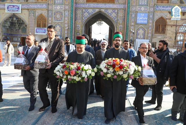 في أجواء إيمانية غامرة بالفرح والسرور، توافدت كوكبة من خدّام العتبة الحسينية المقدسة حاملين باقات الزهور وقلوبهم عامرة بالمحبة والولاء للتشرّف بزيارة الإمامين الكاظمين الجوادين "عليهما السلام" وإحياء ذكرى ولادة غصن الشجرة السرمدية الإمام محمد بن علي الجواد "عليه السلام".