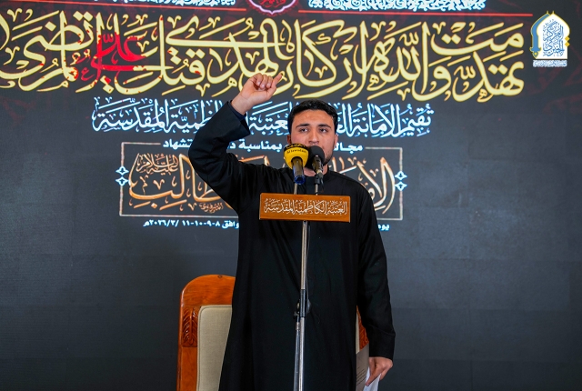 كما تخلل البرنامج العزائي مشاركة الرادود كاظم الموسوي بقراءة القصائد والمراثي حيث صَدَحت حناجرته بالحُب والولاء لإمام المتقين "عليه السلام"، وبحضور جموع المؤمنين ممن توافدوا لإحياء هذه المناسبة، وتقديم العزاء إلى الإمامين الجوادين "عليهما السلام" مجددين الولاء الممتزج بروح الأسى على الرزية التي حلّت بالبيت النبوي، بعد ضرب ابن ملجم اللعين رأس الإمام "عليه السلام" في محرابه المقدّس فجر يوم التاسع عشر من شهر رمضان المبارك سنة 40هـ، ليُنهي حياته الكريمة في محراب الله ساجداً بين يديه فكما جاء إلى الدنيا من بيت الله خرج منها من بيت الله فسلام على أبي الحسن والحسين يوم ولد ويوم استشهد ويوم يُبعث حيا.