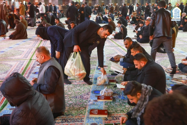 وبعد انتهاء تلك المراسم المباركة، توجّه خدّام العتبة الكاظمية المقدسة بتقديم وجبات السحور إلى الزائرين الكرام.