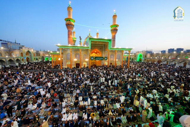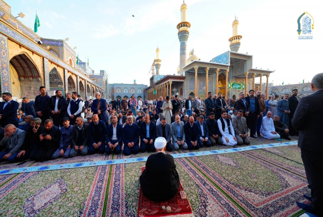 إذ تراصّت صفوف الموالين ليتضرعوا إلى بارئهم بطاعة وخشوع وإيمان وهم يؤدون مراسم صلاة عيد الفطر المبارك، وزيارة الإمامين الكاظمين الجوادين "عليهما السلام" بإشراف مكتب سماحة المرجع الديني الأعلى آية الله العظمى السيد علي الحسيني السيستاني "دام ظله الوارف" وبإمامة ممثل المرجعية الدينية في مدينة الكاظمية المقدسة سماحة الشيخ حُسين آل ياسين "دامت توفيقاته"، وبحضور الأمين العام للعتبة الكاظمية المقدسة، خادم الإمامين الكاظمين الجوادين الدكتور حيدر عبد الأمير مهدي، وأعضاء مجلس الإدارة الموقر.