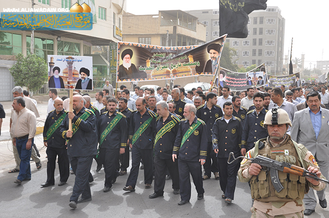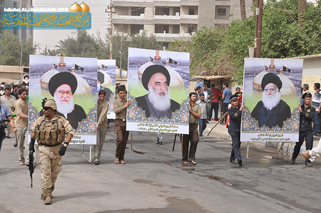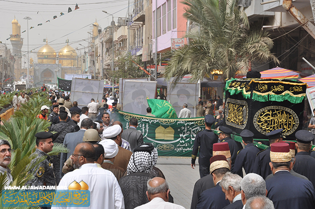 احياءً للذكرى الثالثة والثلاثين لاستشهاد سليل العترة الطاهرة(ع) العالم المفكر السيد (محمد باقر الصدر) قدس سره, الذي ضحى بالغالي والنفيس في الدفاع عن الخط الرسالي والنهج القويم للرسول الاكرم(ص) وأهل بيته الاطهار(ع) وتخليداً لسيرته المشبعة بالفكر النيّر والمعرفة والجهاد, نظم مكتب سماحة المرجع الديني آية الله الفقية السيد حسين السيد إسماعيل الصدر مسيرة عزائية حاشدة, تقدمها النعش الرمزي المبارك للشهيد المجاهد, وشارك في هذه التجمع الولائي الأمين العام للعتبة الكاظمية المقدسة الحاج(فاضل الانباري) وعدد من اعضاء مجلس الادارة الموقر وخدمة الامامين الجوادين(ع) والمؤسسات الدينية والاجتماعية وطلبة جامعة صدر العراق والمدارس الثانوية التابعة لمكتب سماحة السيد الصدر اضافة للعديد من الشخصيات الدينية والاجتماعية والعلمية, ووجهاء وشيوخ العشائر وجمع غفيرة من أهالي مدينة الكاظمية الكرام, وانطلقت المسيرة من جامع الهاشمي حيث جابت شوارع المدينة المقدسة متجه صوب المشهد الكاظمي المقدس عند باب المراد وصولاً إلى حرم الإمامين الجوادين(ع) واختتمت باقامة مجلس للعزاء في مرقد السيد المرتضى(قدس سره) المجاور للصحن الكاظمي الشريف, وصدحت حناجر المعزين بالهتافات والردات الرثائية التي مجدت السيرة المباركة للسيد الشهيد وما بذله من تضحيات جسام لإصلاح المجتمع, والتصدى لكل اشكال الانحراف التي كانت تهدف الى مسخ الهوية الاسلامية ومحاربة الشريعة المقدسة .