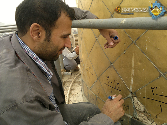 تجدد العزم بخطوات واثقة بمشروع جديد من المشاريع المهمة، وصرح شامخ من صروح العتبة الكاظمية المقدسة، لما له من أبعاد روحية وإيمانية ألا وهو إعادة إعمار وتجديد وتذهيب المنائر الأربعة للحرم الكاظمي المطهر التي توالت عليها الحقب الزمنية . حيث باشرت الأمانة العامة للعتبة الكاظمية المقدسة بالمرحلة الأولى لمشروع إعادة إعمار وتذهيب المنارة الشمالية الغربية لمشهد الإمامين الجوادين "عليهما السلام" ، وعن تفاصيل المشروع حدثنا المهندس "عبد الرحيم كيطان " قائلاً: تم بعون الله تعالى المباشرة بالعمل في تنفيذ مشروع المنارة التي سميت برقم (1) بتاريخ 14/10/2014م، حيث بدأنا بالجزء الأول بترقيم البلاطات القديمة ورفعها والبالغ عددها 28 بلاطة ذهبية في كل سطر، ومن ثم إزالة الأنقاض والمخلفات المتراكمة، تلاها الجزء الثاني من العمل حيث قمنا برفع مقاطع الذهب الطولية المرصوصة في الميل وما يسمى "بالبرقع"، وكما تعلمون لقدم عمارتها والإهمال الذي تعرضت لها لمدة زمنية طويلة قد ظهر في جدارها الخارجي بعض الشقوق والثقوب وهذه تحتاج إلى صيانة وطلاء ومعالجتها بمواد خاصة للحفاظ عليها، وتعتبر هذه المرحلة هي من أهم المراحل قبل تثبيت البلاطات الذهبية الجديدة ، كما أكد إن العمل قائم على قدم وساق لاستكمال المراحل الأولى من أعمال المشروع. من الجدير بالذكر هناك جملة من المشاريع العمرانية والخدمية المهمة في العتبة الكاظمية المقدسة ستنطلق بداية العام القادم إن شاء الله تعالى وببركة الإمامين الجوادين "عليهما السلام