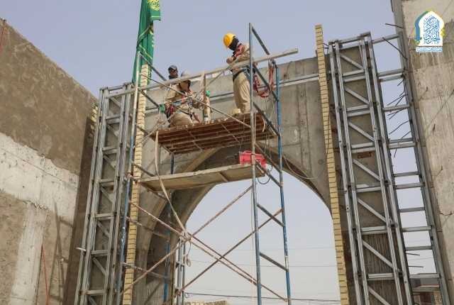 مشروع بوابة مدخل صحن أمير المؤمنين وسيدة نساء العالمين "عليهما السلام" يواصل تقدّمه بخطى ثابتة